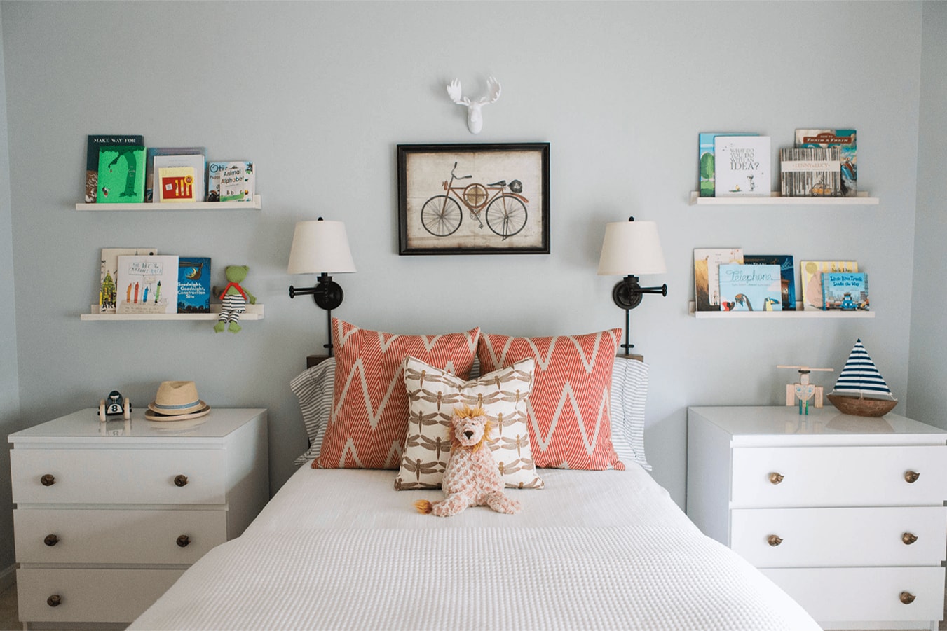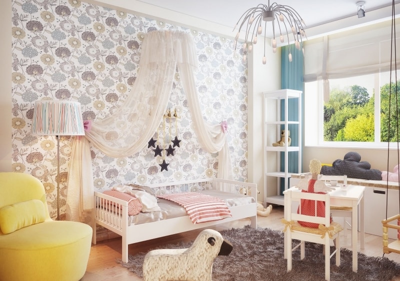 Stop! Do not you think there are too many bright colors for your child? Psychologists say that children are very susceptible to colors. It is better not to disturb the kids with iridescent combinations in large volumes. Use light shades. They do not distract the child. By the way, toys certainly add bright colors to the kid’s room.