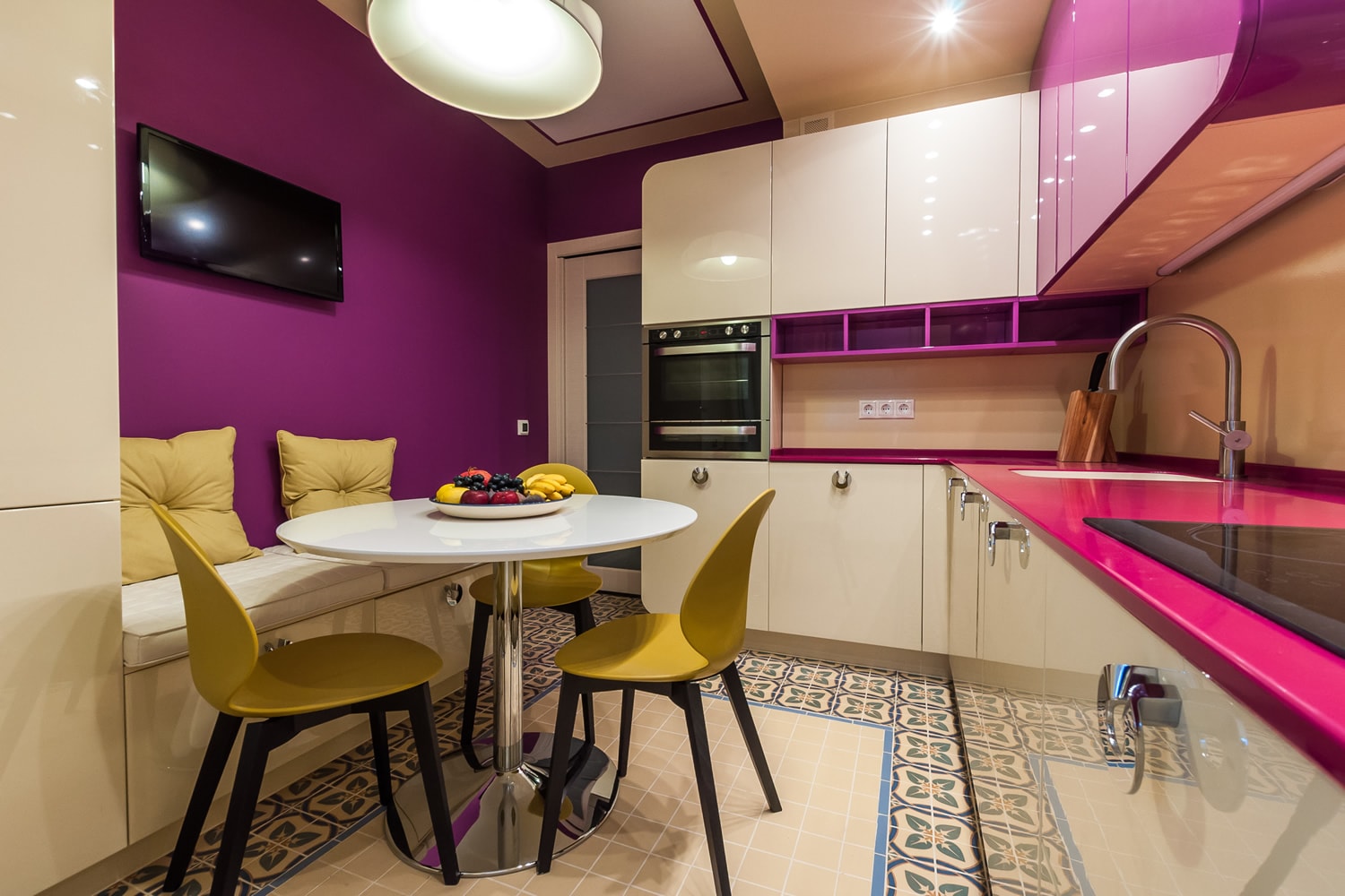 The second one is not polluted so much. It allows you to use for walls any material you like. The most frequent varieties of coverings in kitchens for dining areas are: