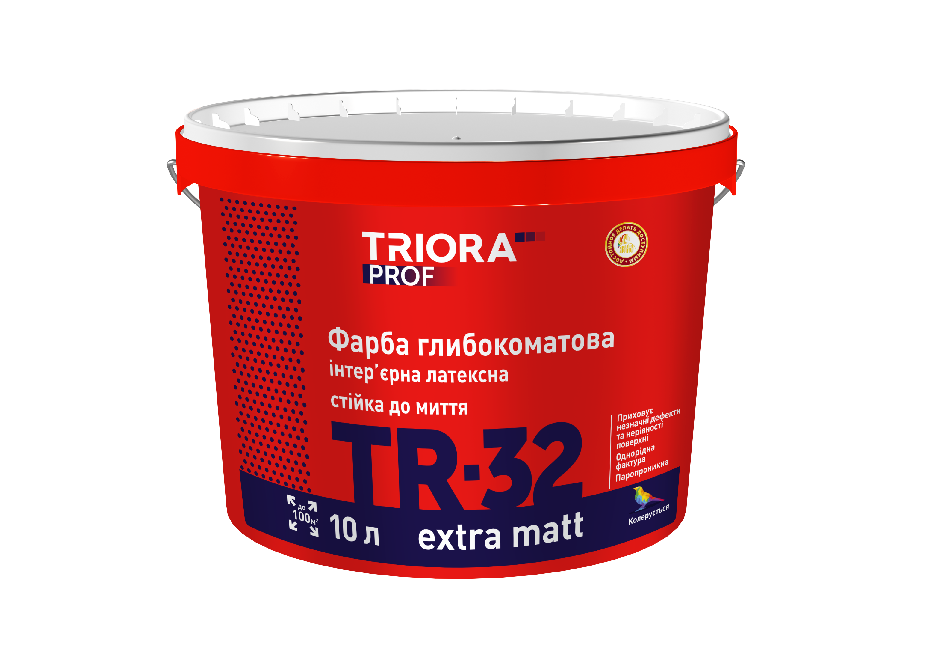 TRIORA Extra Matt Latex Interior Paint with enhanced hiding power offers excellent coverage and economical consumption. Its thixotropic formula prevents splattering during application. It creates a characteristic subtle textured finish that helps conceal minor surface imperfections and irregularities. Easy to apply. Neutral odor. High adhesion to surfaces. Solvent-free.