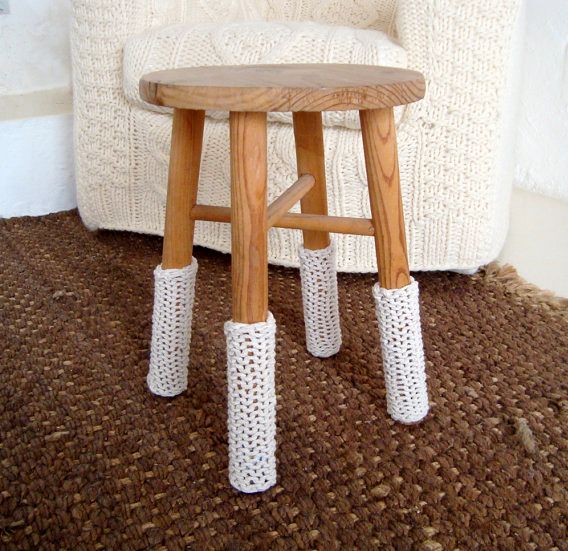 Будь-яка в’язана річ асоціюється із затишком та теплом. У кімнаті будуть актуальні покривала та подушки грубої в’язки, з косами чи іншим візерунком. Можна сплести це власноруч, що додасть виробам особливої цінності. З креативного – у тон покривалу можна вивробити симпатичні «шкарпетки» – чохли для ніжок стільців і столів. Цей позитивний елемент підійме настрій, зробить пересування меблів більш безшумним і безпечним.