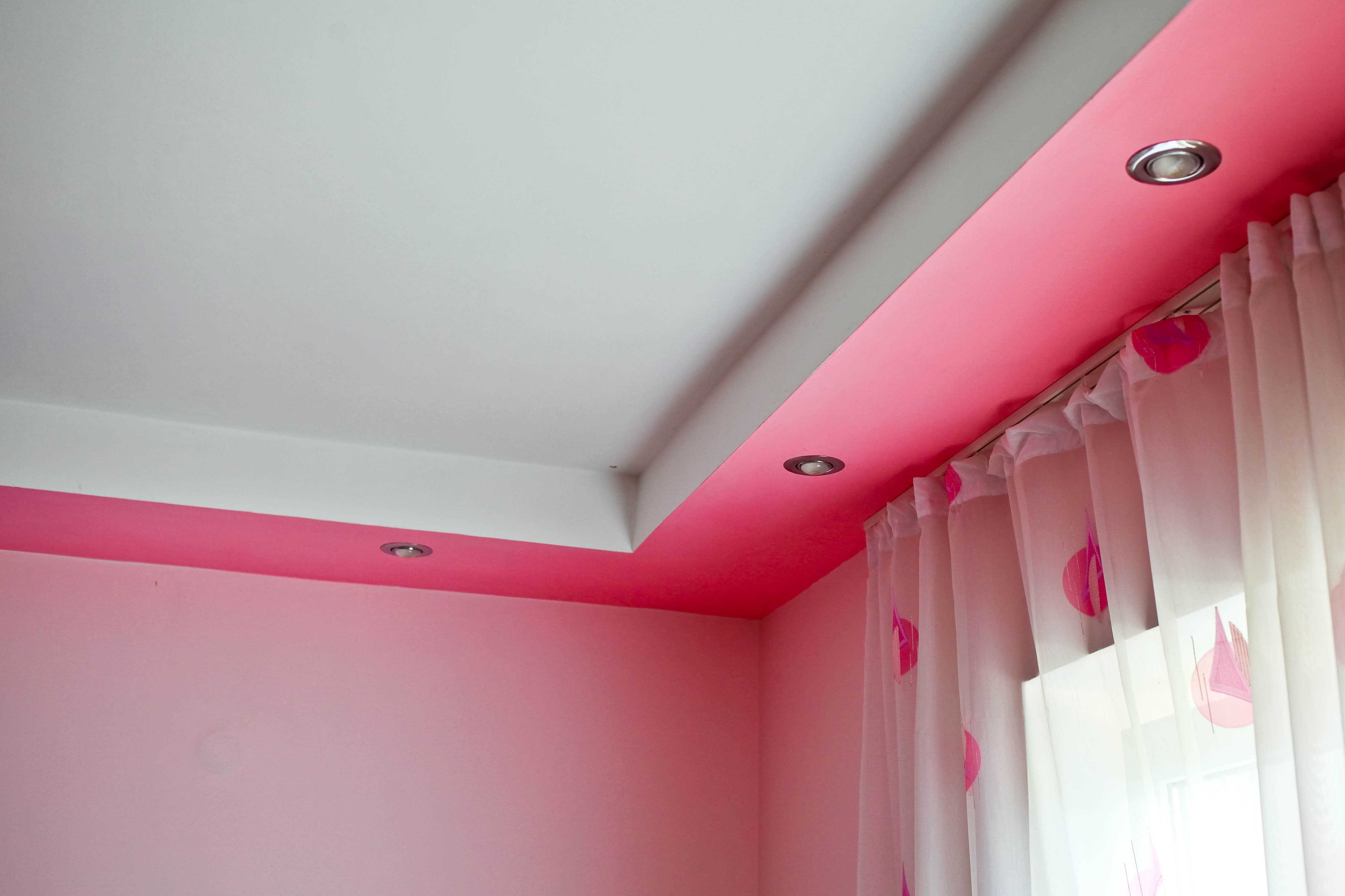 Стіни та стеля одного кольору. Колір, який плавно переходить від стіни на стелю, візуально піднімає кімнату. Важливо: стельовий бордюр також не повинен виділятися. Якщо боїтеся, що однокольоровий інтер’єр буде виглядати нудно, застосуйте модну техніку омбре із переходом кольорів. Низ стін виконайте у більш насичених відтінках, а верхню частину зробіть світлою. Оберіть напівматову інтер’єрну фарбу TRIORA. Вона дасть гарний блиск та підкреслить вашу елегантну композицію.