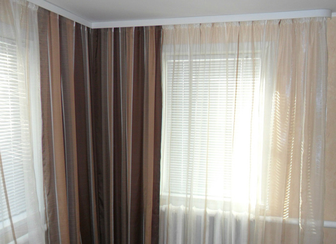 Штори на допомогу. Зі шторами можна відразу застосувати кілька рішень. Перше – це обов’язково стельовий карниз. Друге – матеріал повинен бути легким, світлих тонів, які не обтяжують приміщення. І третє рішення – це правильний вибір малюнка. Підійдуть фіранки з вертикальним малюнком, а також із малюнком у верхній частині матерії. Візуально подовжить стіну навіть нашита вгорі полотна контрастна стрічка чи рюш.- Увага на меблі. Високі вузькі меблі візуально збільшують стелю, масивні суцільні стінки навпаки, притискають її. Поставте кілька легких стелажів, а інші меблі нехай будуть невисокими, легкої конструкції.